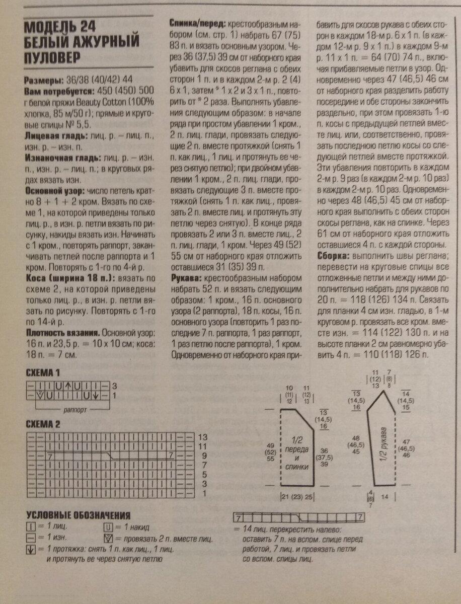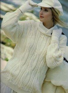 - Изумительная белая кофточка, связанная узором поперек, с рельефными косами и спущенными петлями, будет радовать вас не один год…