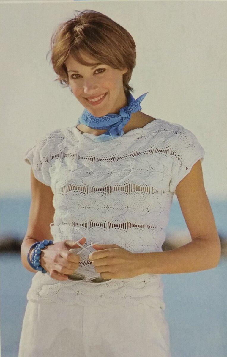 - Свяжите белый жакет с волнистым узором, и вот вы уже-сама женственность и очарование