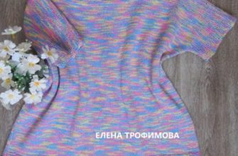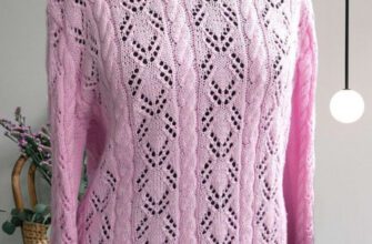 Свободный пуловер с круглым вырезом, вырезами и косами внизу.