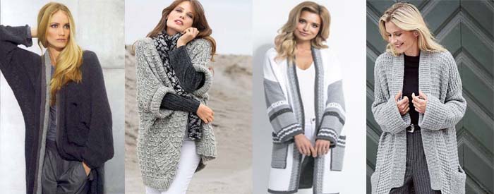 Стильные кардиганы очень свободного кроя и другие изделия уже давно в моде и они идут женщинам любой комплекции. Вяжутся очень просто и быстро. Можно использовать как тонкие, так и толстые нитки.