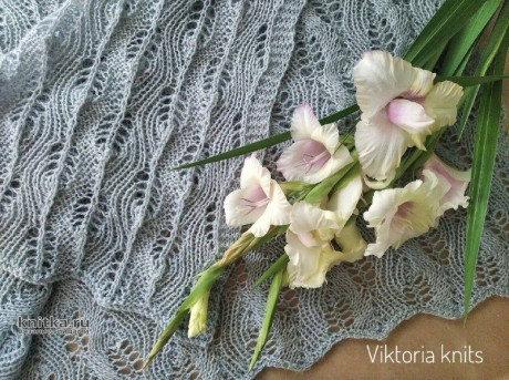 На изображении ниже представлен готовый палантин «Талая вода», выполненный по описанной схеме. Этот изящный аксессуар создан мастером Викторией Минязовой.